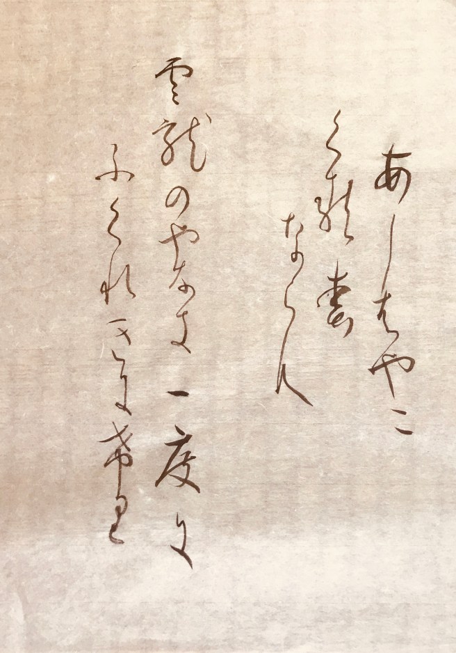ashi hayani、kuru haru naramu、unryuu no、yanagi ichido ni、fukureki ni keri