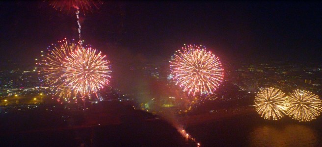 https://vimeo.com/135160594 Aerial drone shot of the summer fireworks festival last night in Makuhari, Chiba. We flew a DJI Inspire 1 drone over the water, facing the Chiba Marines baseball stadium. This is the final few minutes, including the finale. Music by bensound http://www.bensound.com